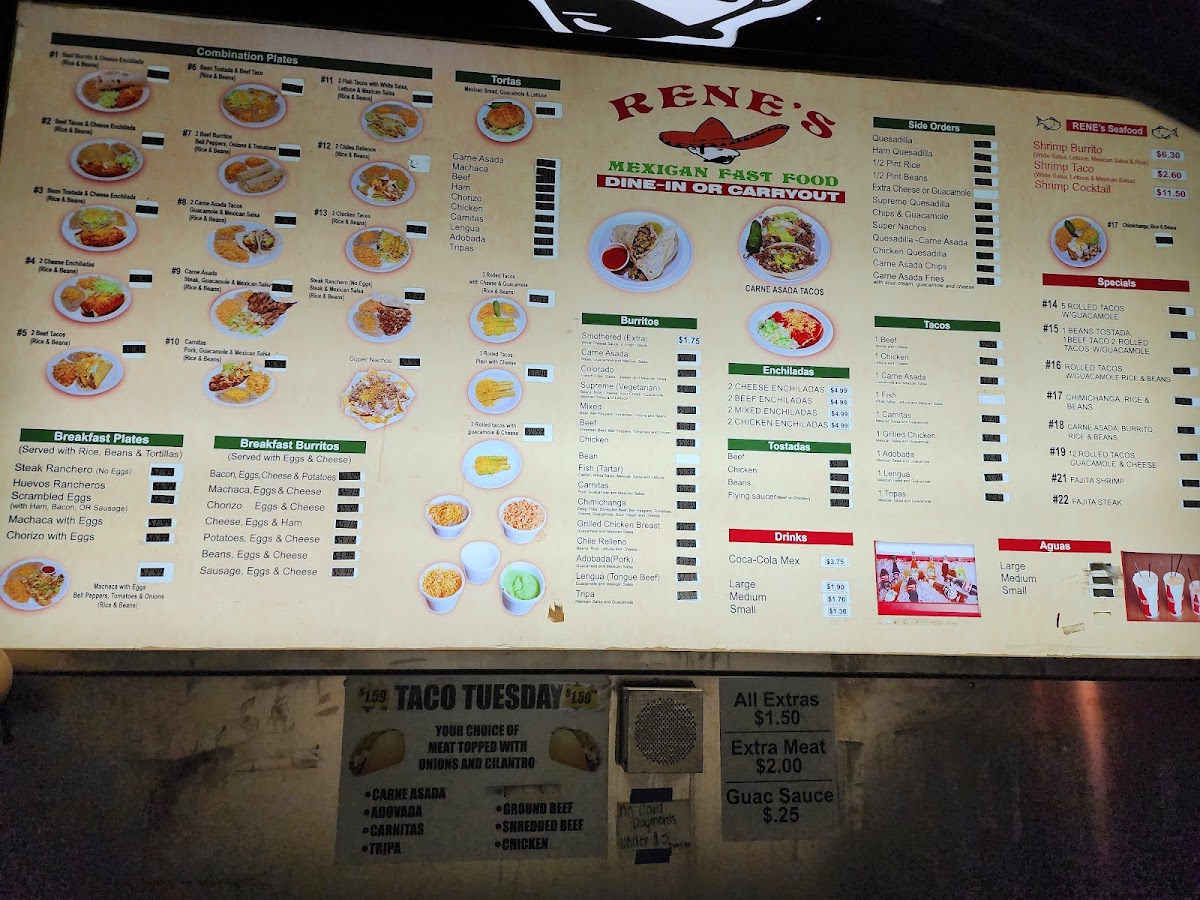 Customer reviews echo the heartfelt enjoyment of dining at Rene's. Robert Hall raves, “We went here at 1:00 in the morning. I traveled from out of town for work. The best Mexican food I've had since going to California, hands down!” Such passionate praise reflects the dedication to quality found at this establishment.